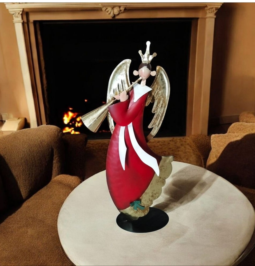 Angelo musicista in metallo, dimensioni 24x11x47 cm