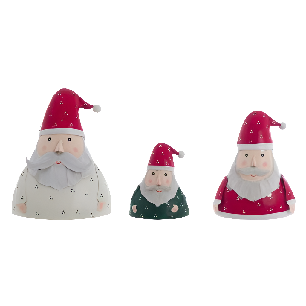 Busto di babbo natale in latta, altezza massima 20 cm, 3 soggetti a scelta.