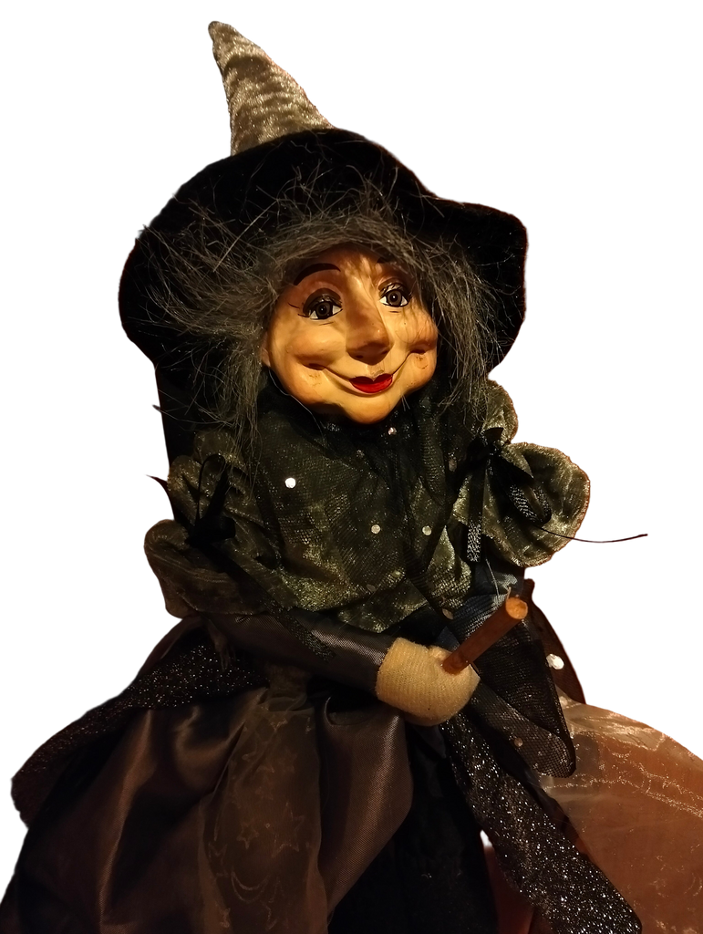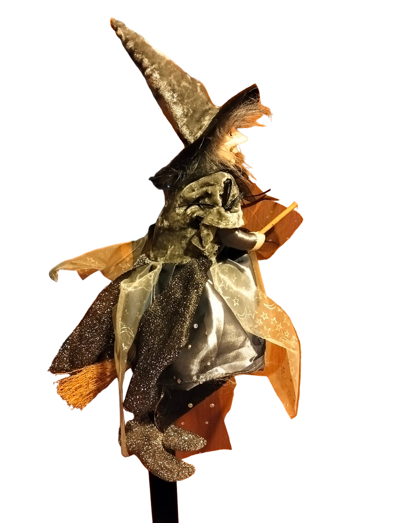 Befana elegante da appendere. Con vestito in velluto argentato e voile