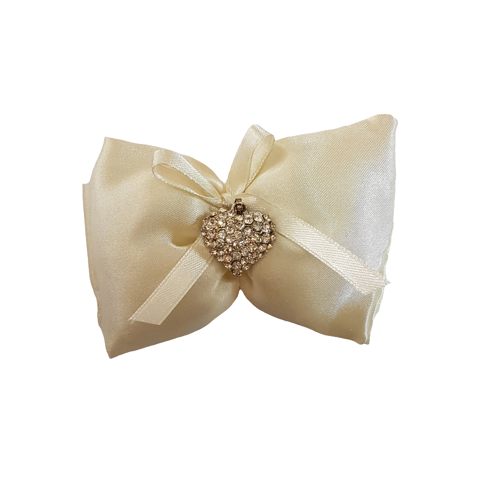 BOMBONIERA A SACCHETTO IN RASO AVORIO, CHIUSA A FIOCCO,CON CIONDOLO A CUORE IN STRASS, LEGATO CON NASTRO IN RASO AVORIO. IDEALE SIA PER MATRIMONIO CHE PER COMUNIONE,CRESIMA O BATTESIMO.