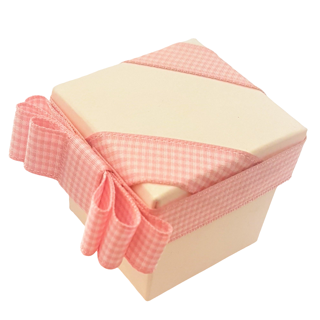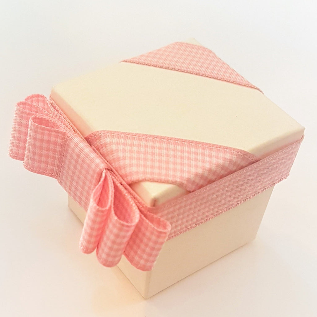 BOMBONIERA SCATOLA AVORIO CON NASTRO VICHY ROSA,