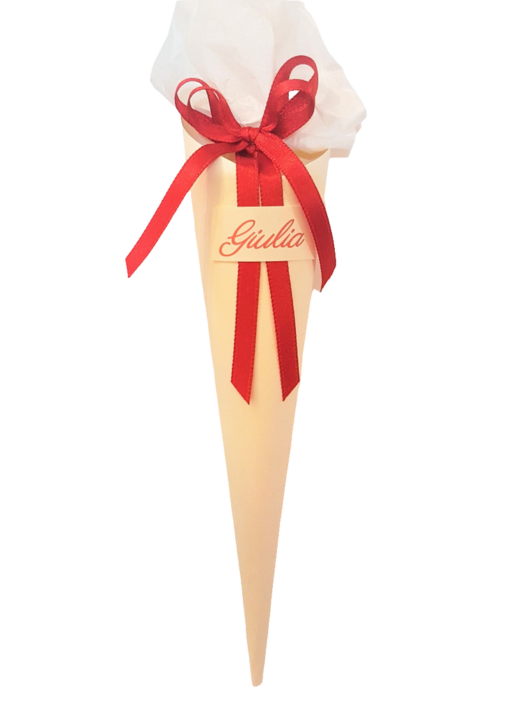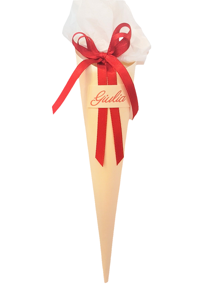 CONO LAUREA IN CARTONCINO AVORIO, CON CONFETTI ALL'INTERNO IN CARTA DI RISO.