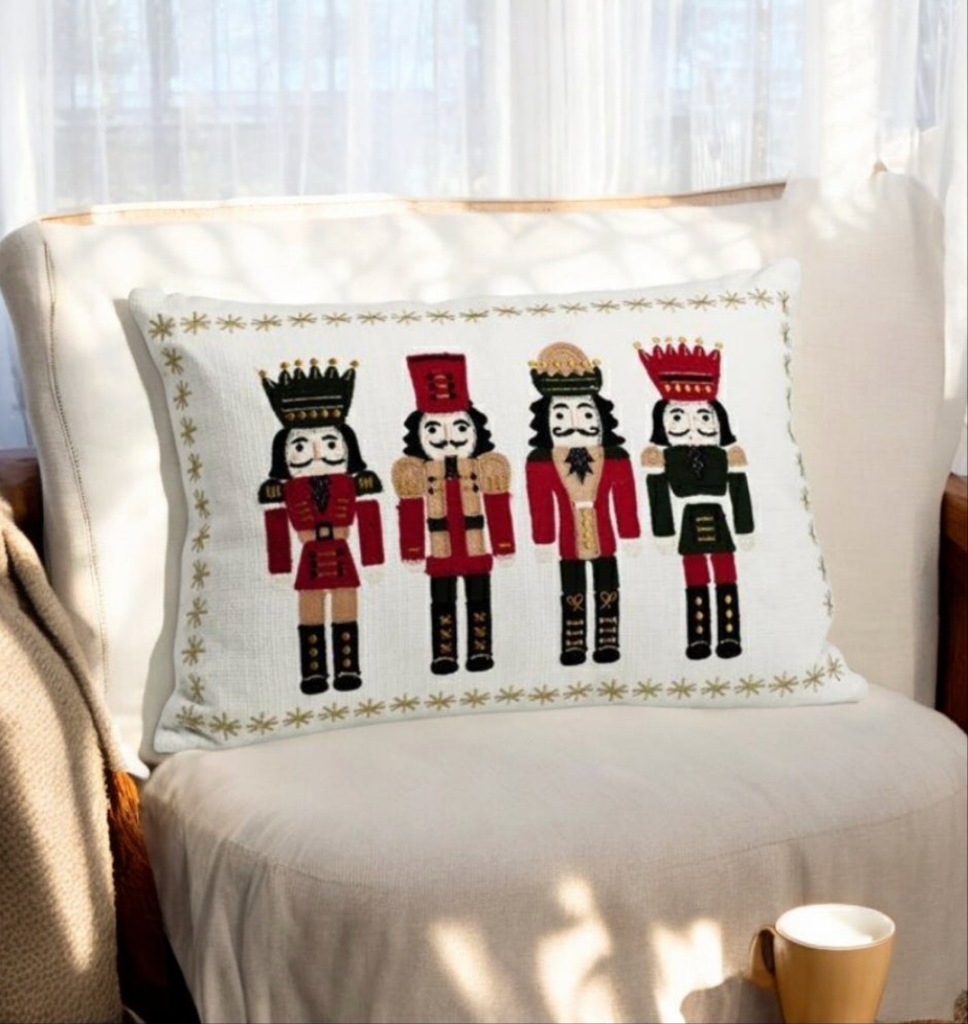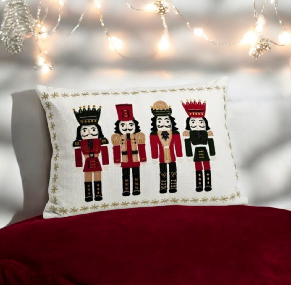 Cuscino in cotone con soldatini schiaccianoci. Completo di imbottitura