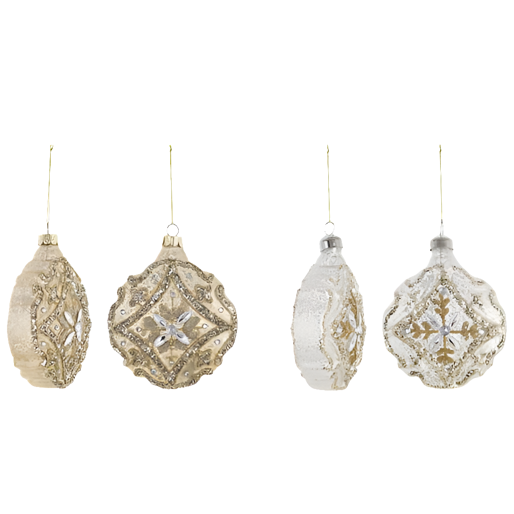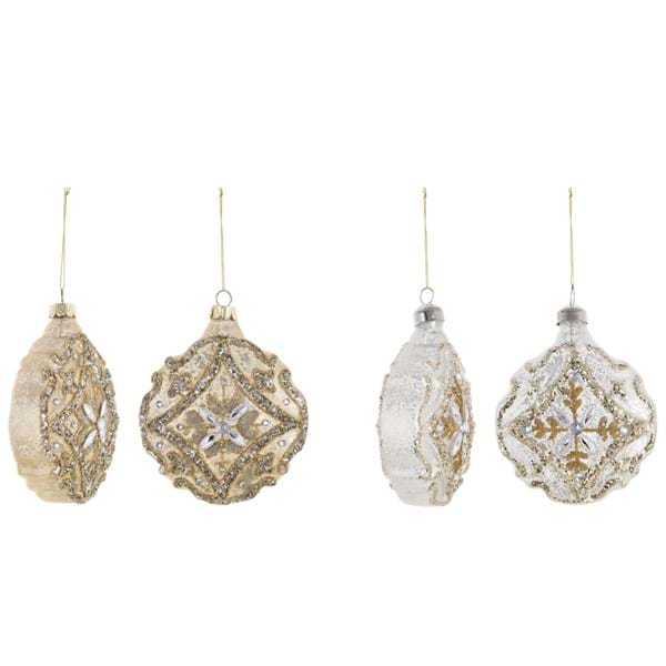 DECORAZIONE NATALIZIA PER ALBERO DI NATALE, IN VETRO CON DECORI IN RILIEVO, STILE ANTICATO