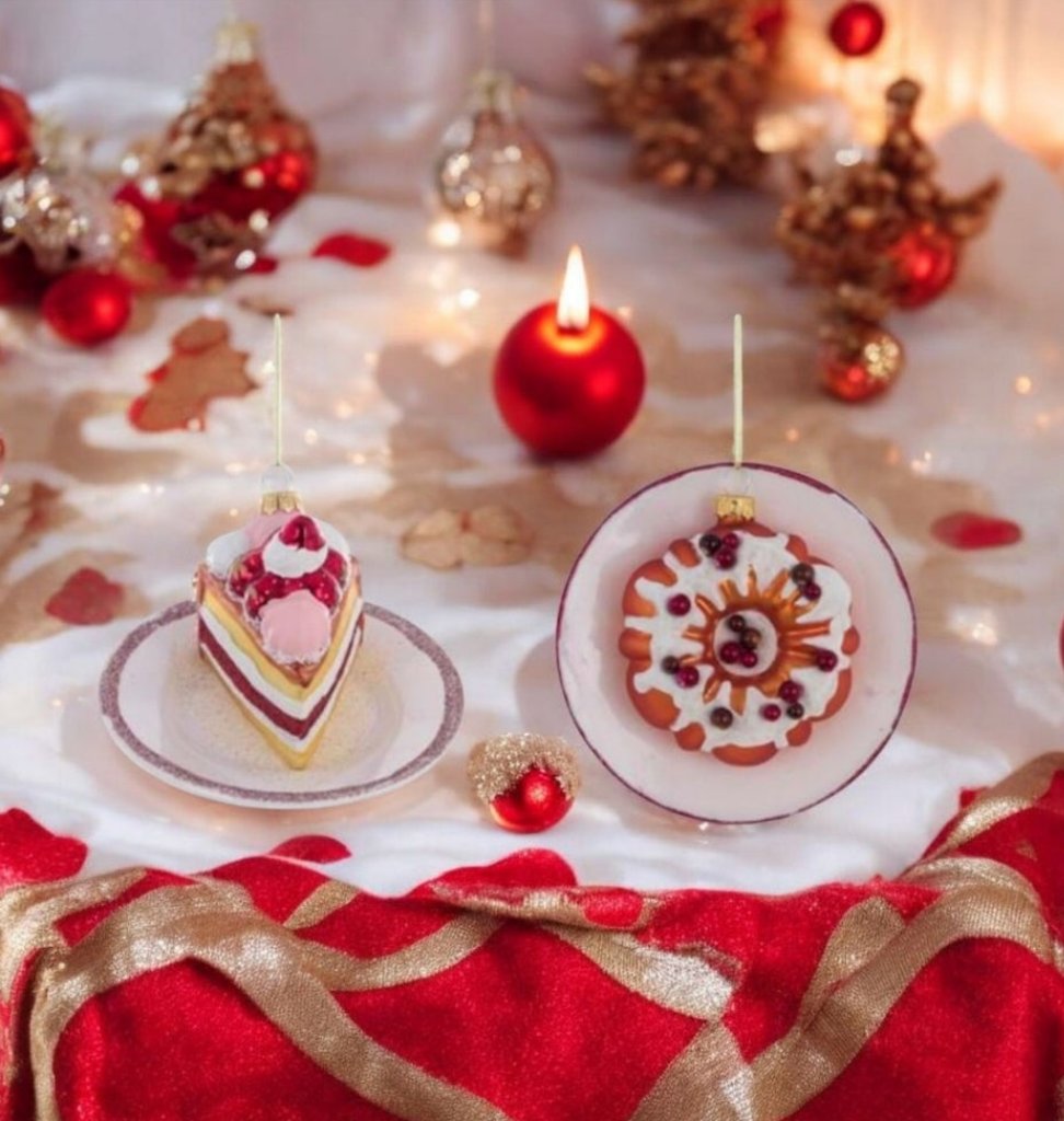 Decorazione natalizia in vetro, a forma di dolci, torta o ciambella. Ideali da appendere all'albero ma anche da appoggiare su un vassoio