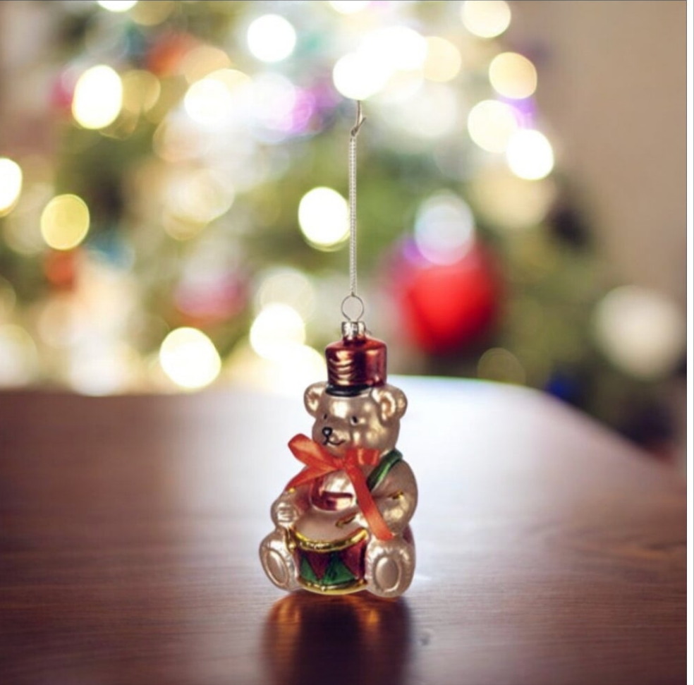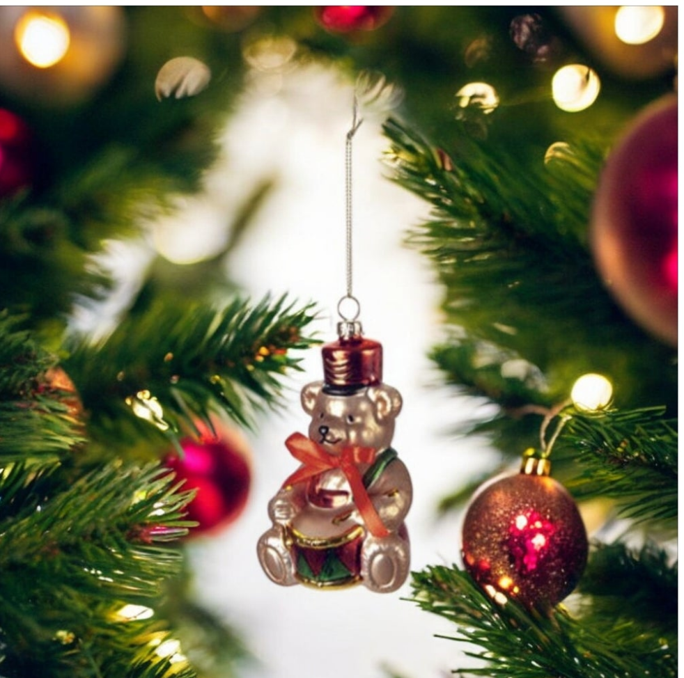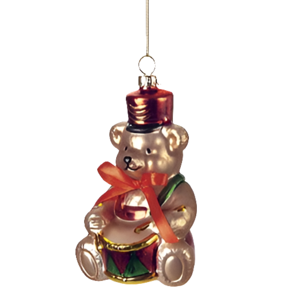 DECORAZIONE NATALIZIA IN VETRO ORSETTO CON TAMBURO