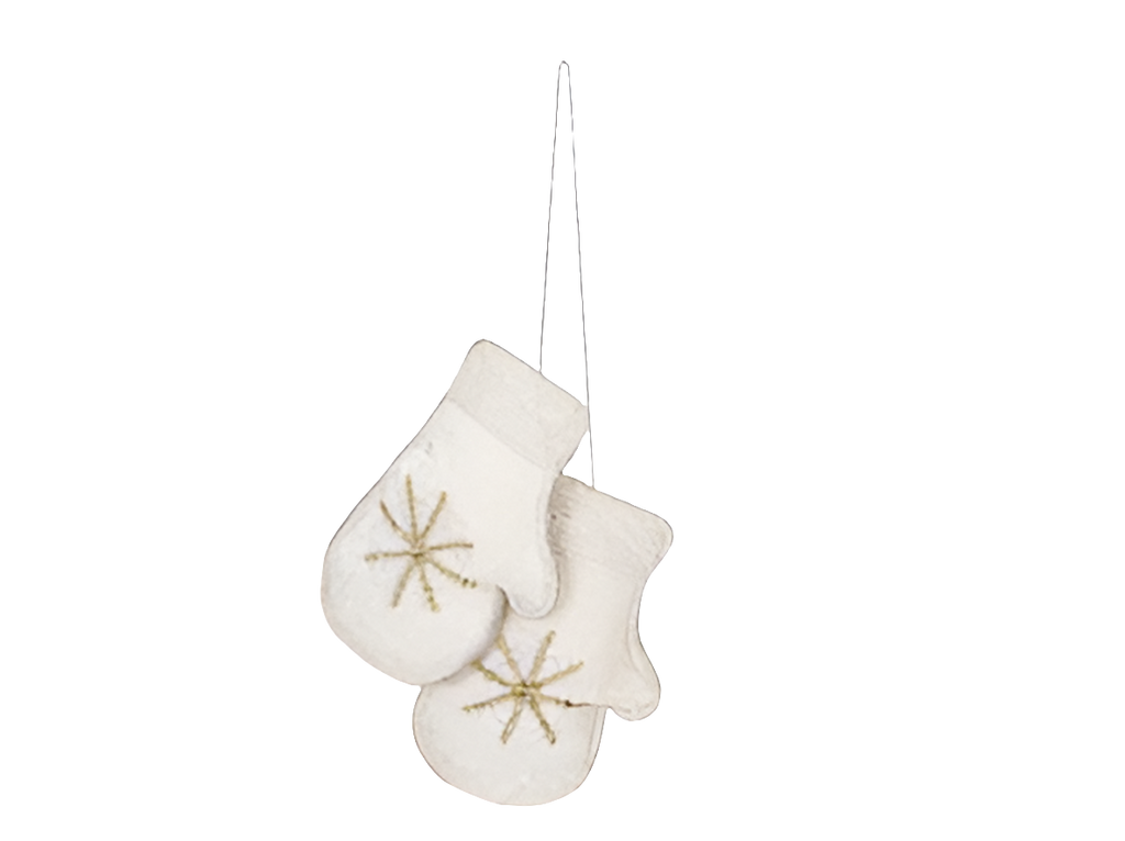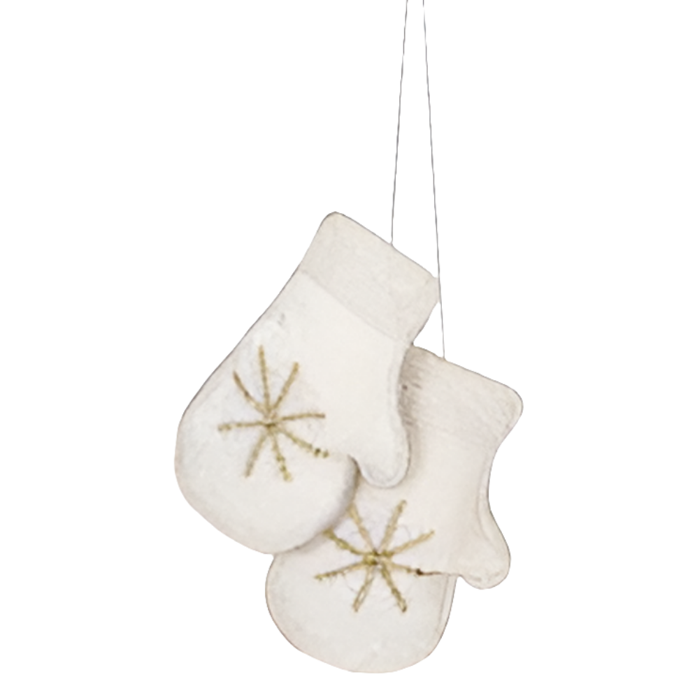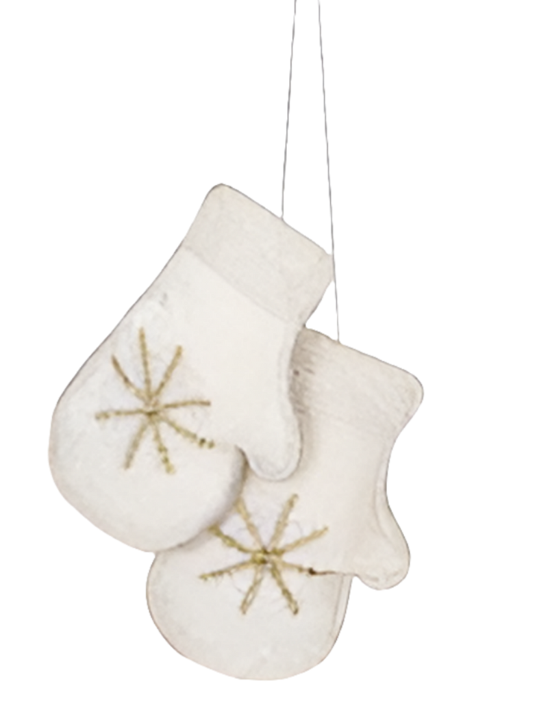 DECORAZIONE NATALIZIA IMBOTTITA GUANTO CON PERLINE D10 H15 BIANCO