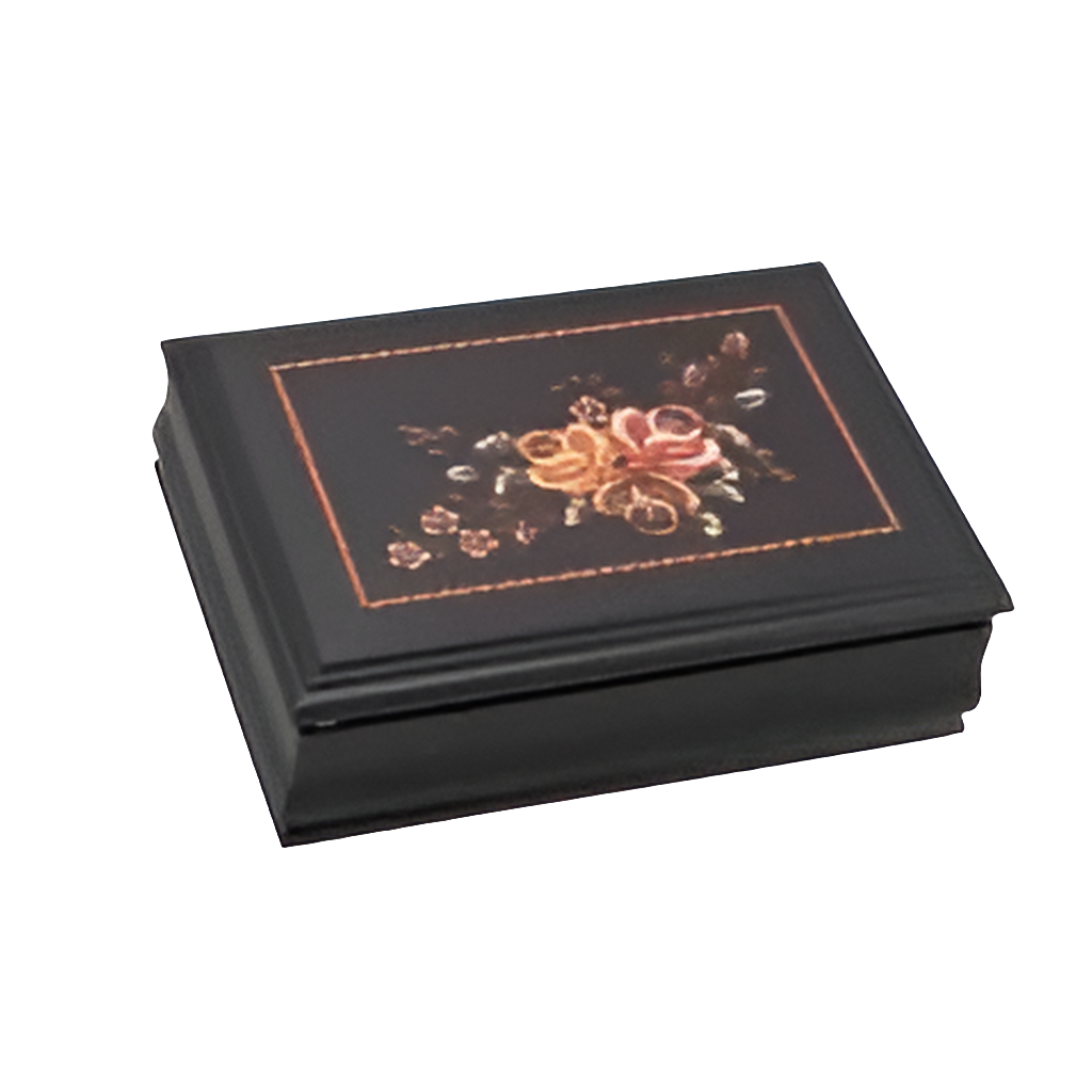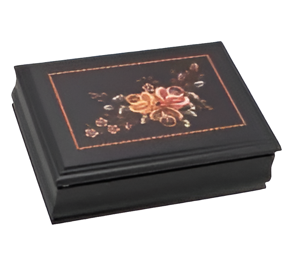 COFANETTO PORTAGIOIE CARILLON IN LEGNO CON DISEGNI FLOREALI