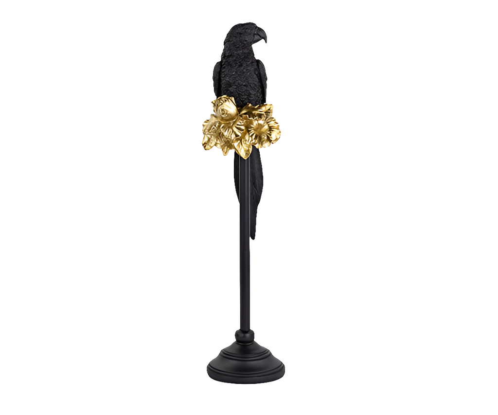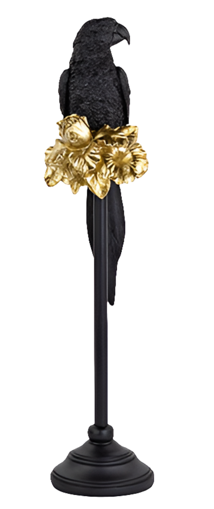 PAPPAGALLO NERO SU TRESPOLO, CON DECORI ORO