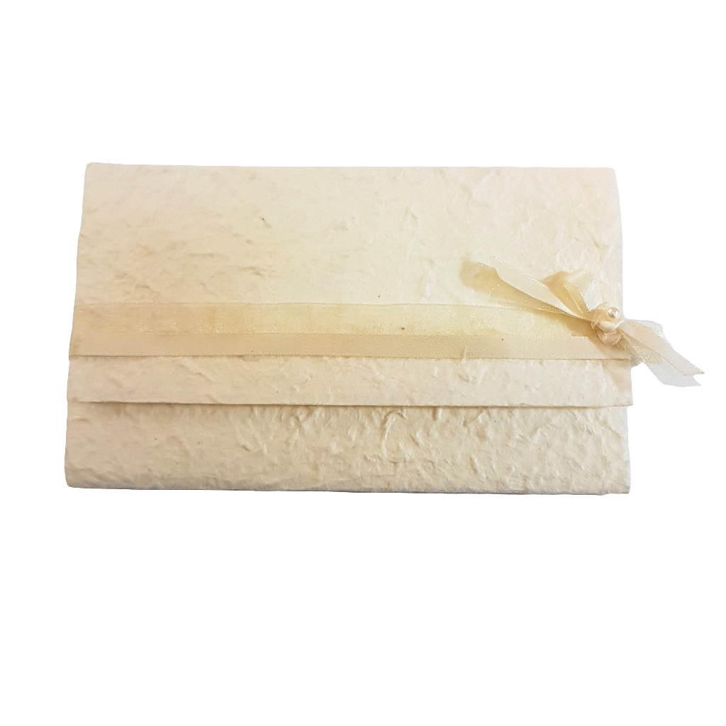 PARTECIPAZIONE IN CARTA COTONE BIANCA CON NASTRI IN VOILE E RASO CHIUSI A FIOCCO CON PERLINA