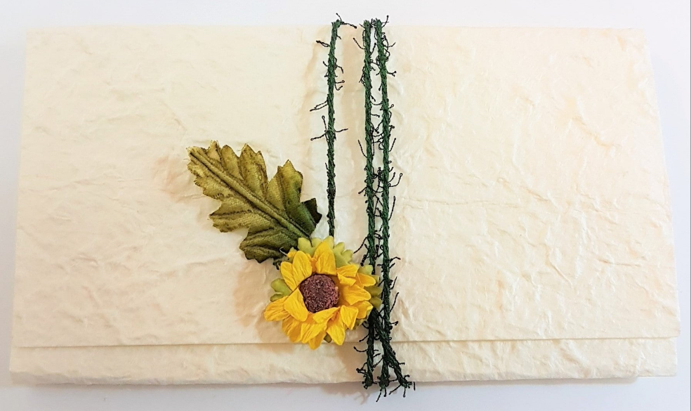PARTECIPAZIONE IN CARTA COTONE BIANCA CON GIRASOLE E CORDINO VERDE