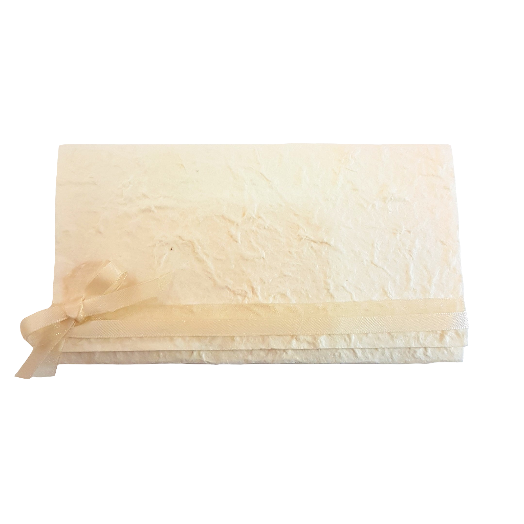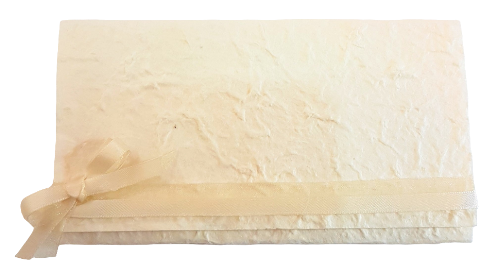 PARTECIPAZIONE IN CARTA COTONE BIANCA CON APPLICAZIONE NASTRI IN VOILE E RASO IN TINTA CHIUSI A FIOCCO