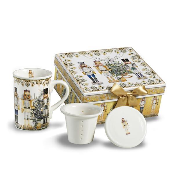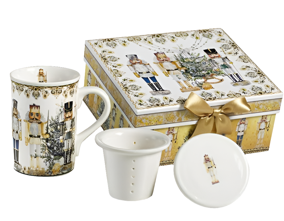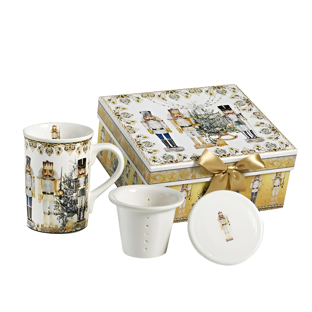 Tisaniera natalizia in ceramica con scatola, motivo schiaccianoci.