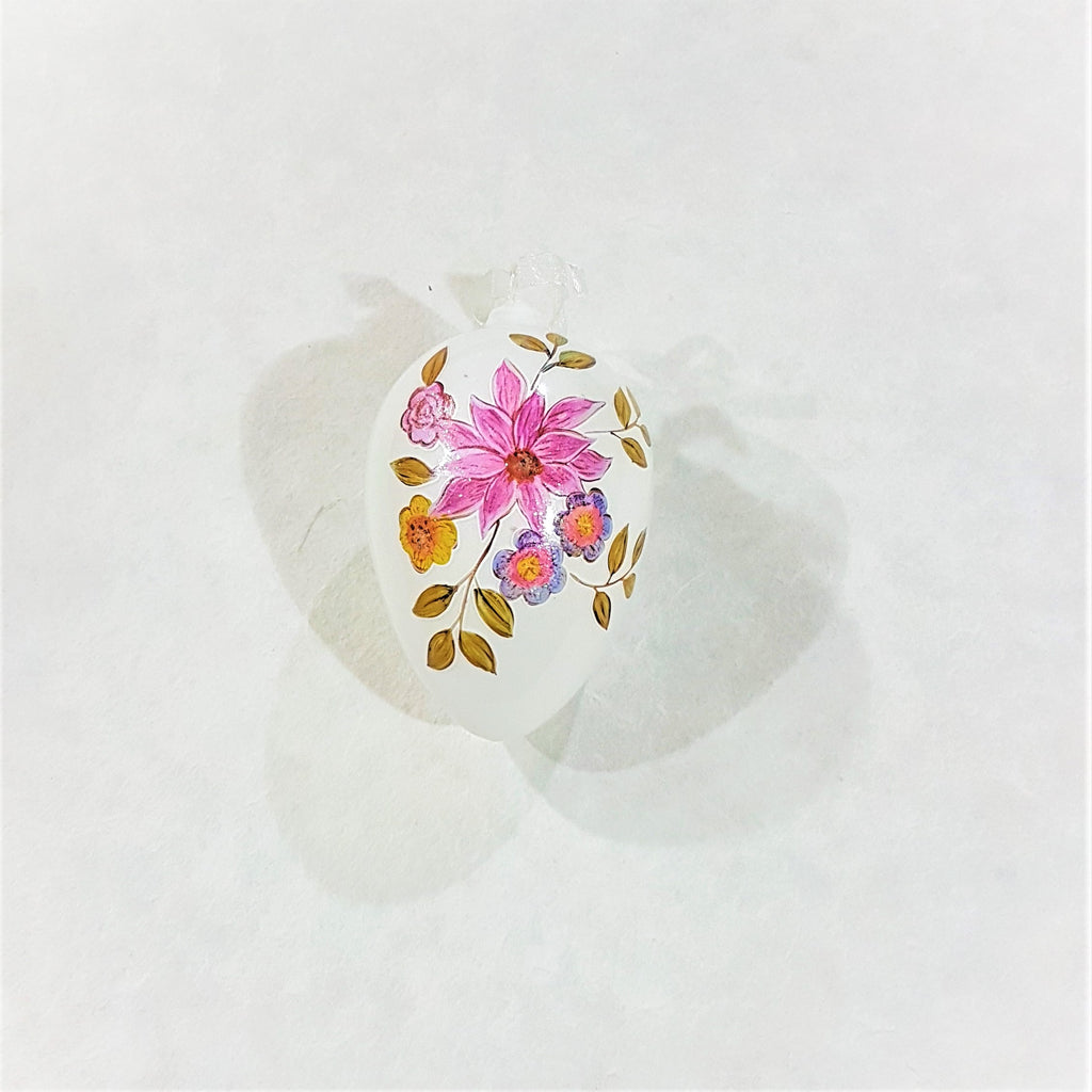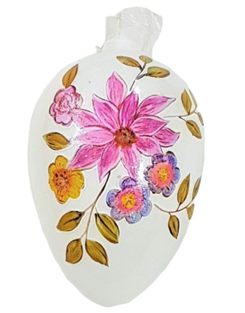 UOVO BIANCO IN VETRO DECORATO, DA APPENDERE