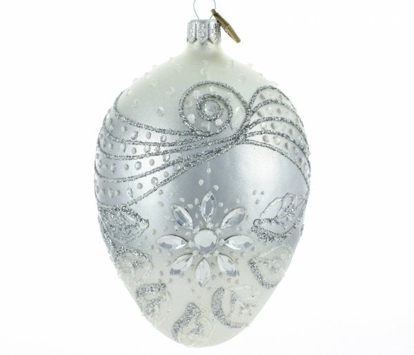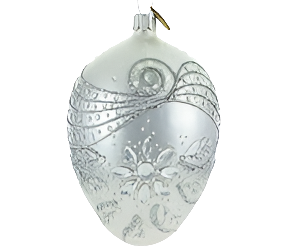 DECORAZIONE NATALIZIA DA COLLEZIONE A FORMA DI UOVO IN VETRO SOFFIATO, DECORATO A MANO