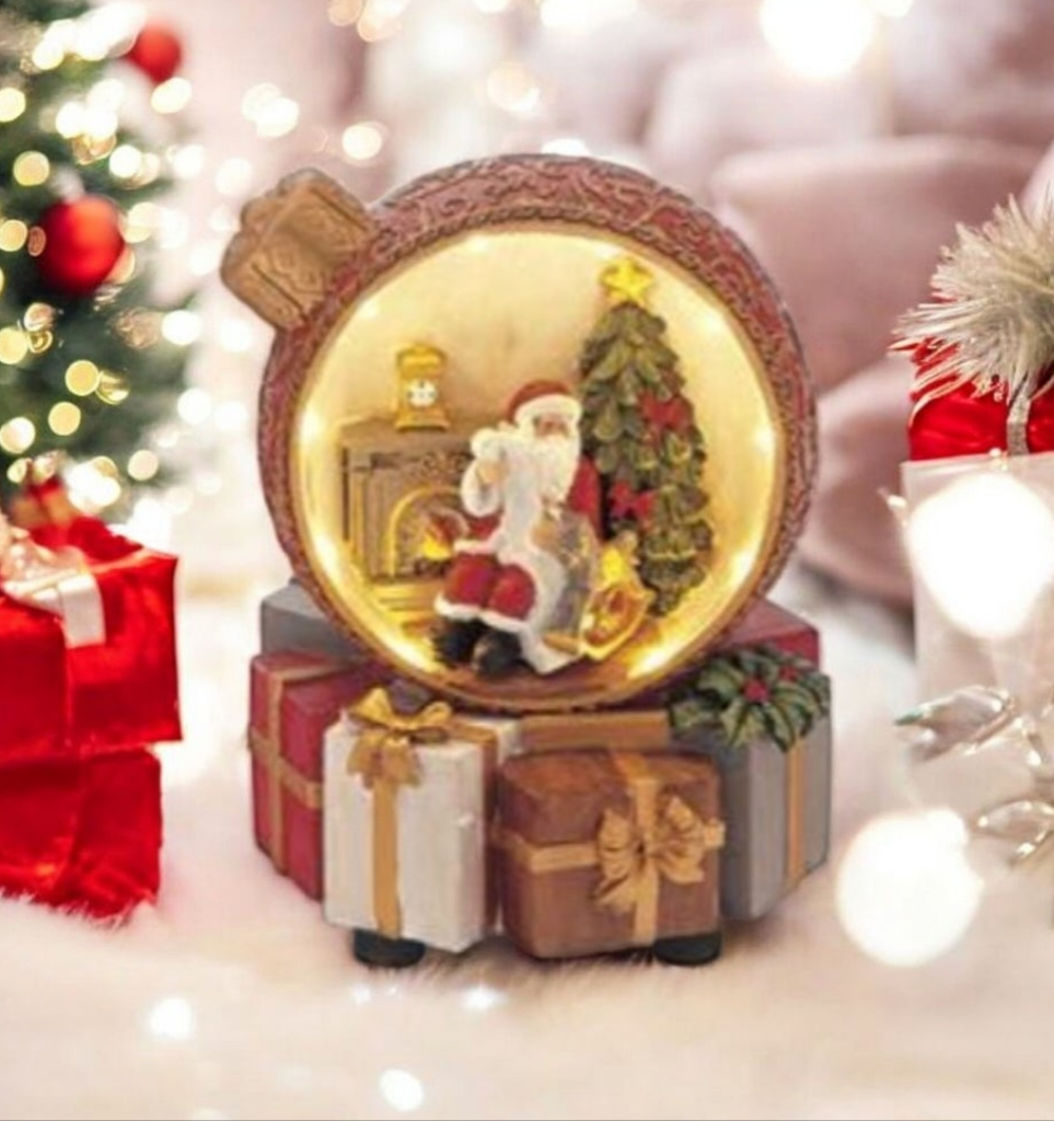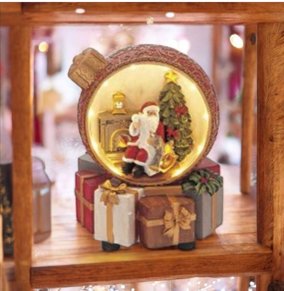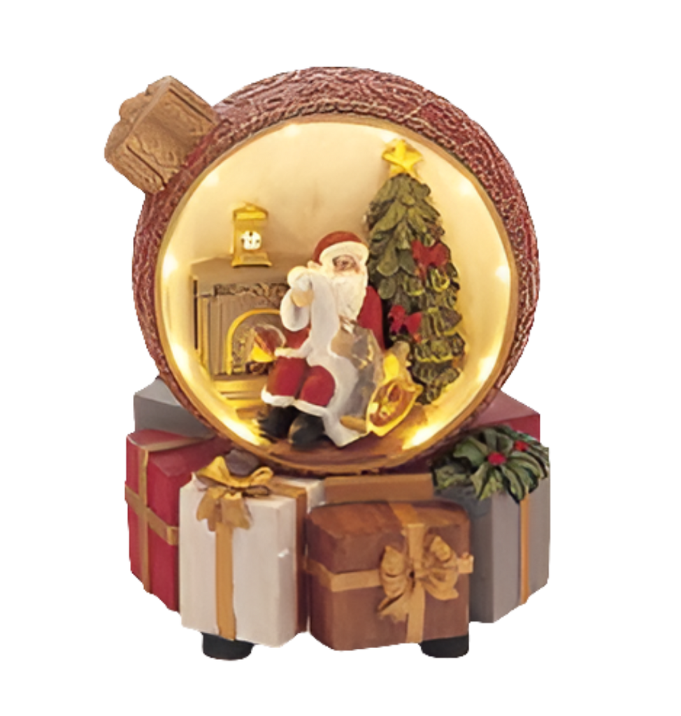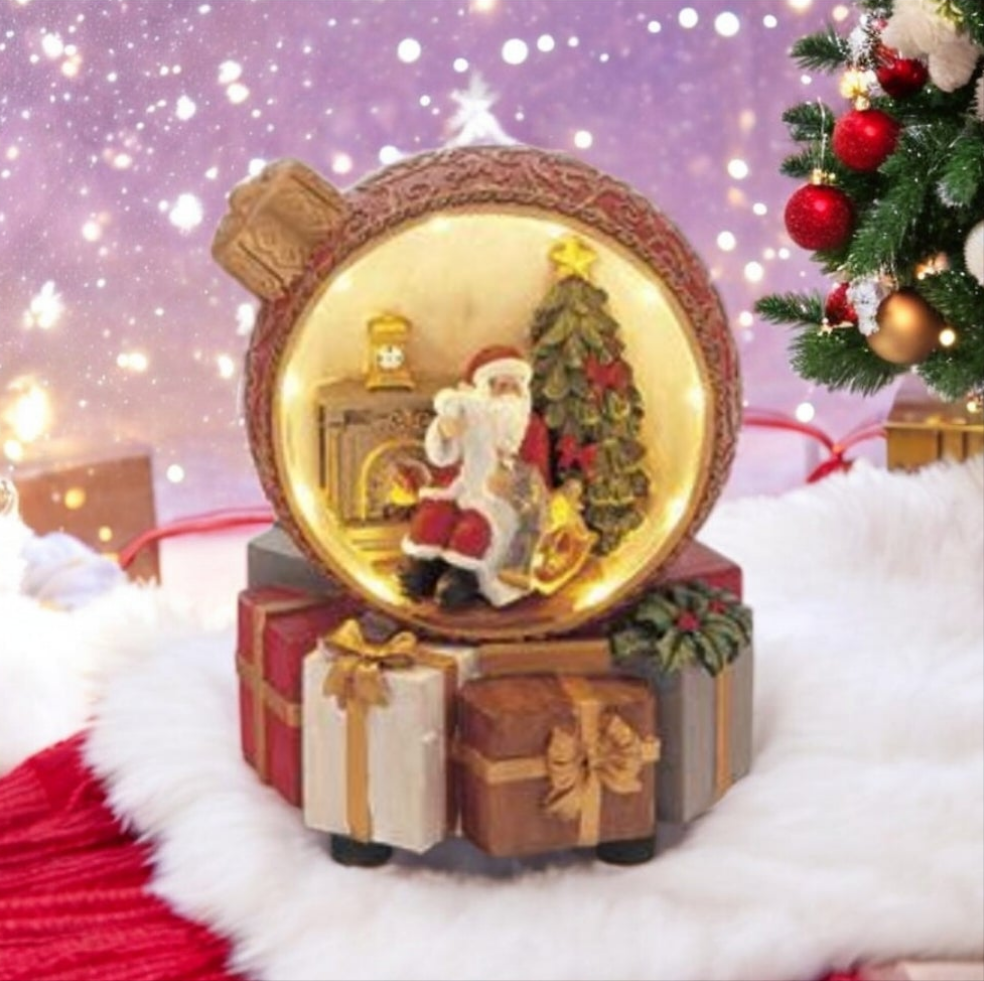 Villaggio natalizio in resina, dentro pallina di Natale. Luci suoni